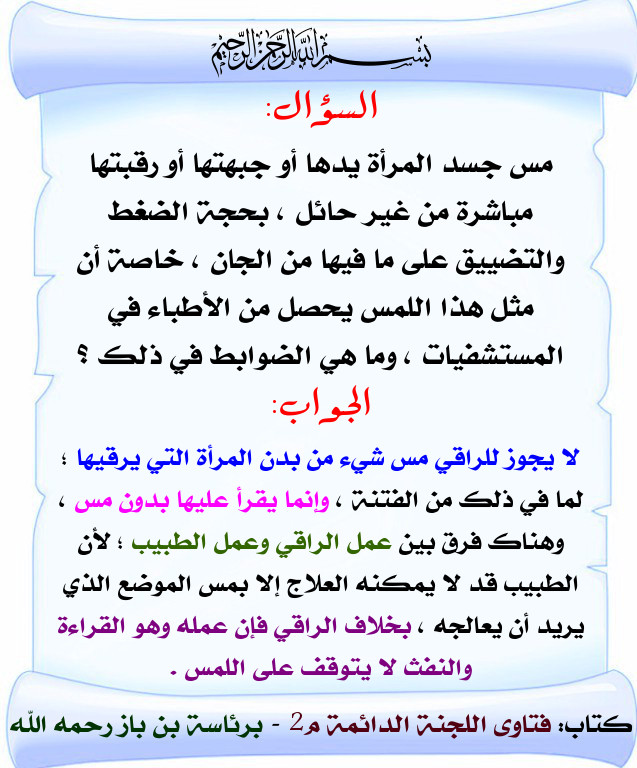 حكم لمس الراقي للمرأة عند الرقية اللجنة الدائمة بطاقة دعوية منتديات الإمام الآجري