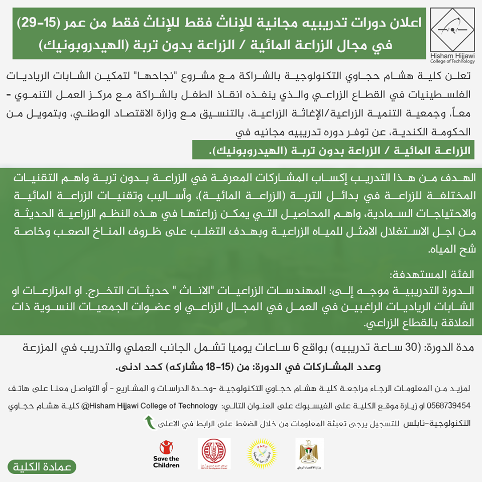 دوز نابلس دورات مجانية للإناث في الزراعة المائية