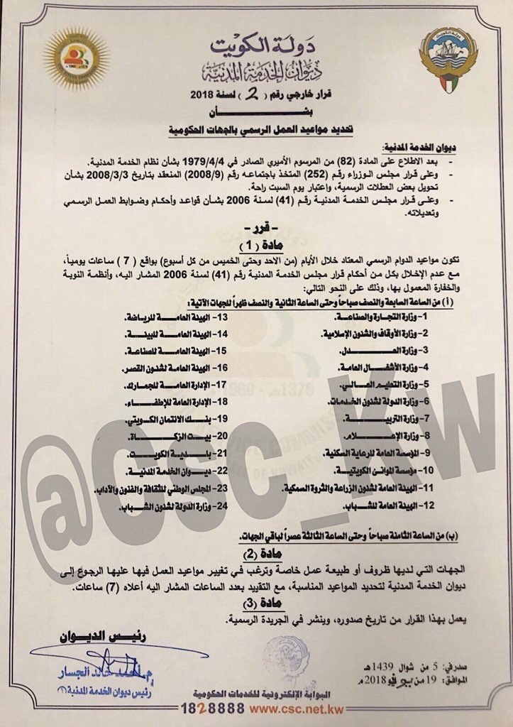 دوام الدوائر الحكومية في رمضان الكويت 2019 اوقات الدوام الرسمي في رمضان الكويت المصدر