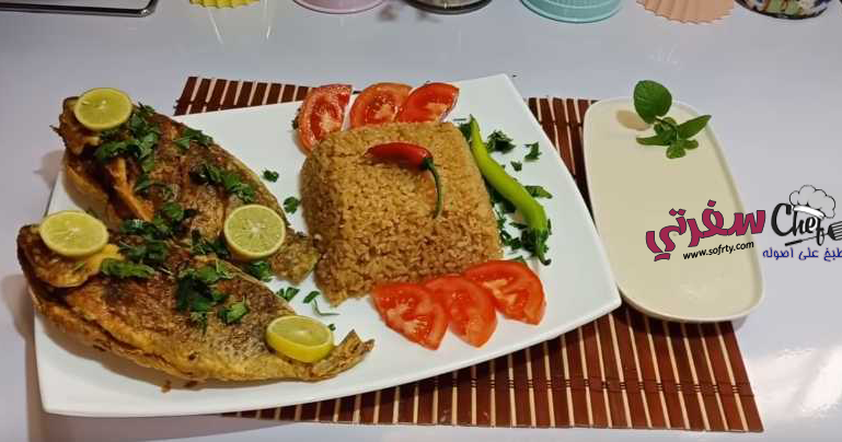السمك المقلي وارز الصيادية وسلطة الطحينة فاطمه ابو حاتي