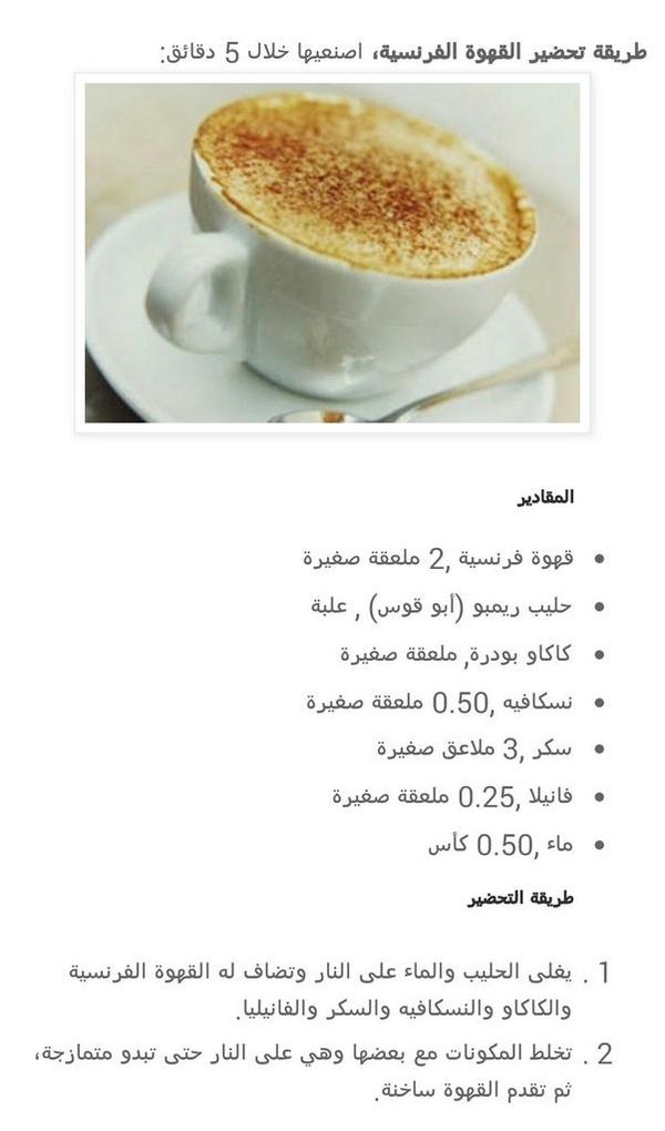 القهوة الفرنسية بالصور الكاتب Muslimovich القهوة الفرنسية لأصحاب المزاج جبت لكم طريقة القهوة الفرنسية المقادير ملعقة صغيره قهوه فرنسيه علبة واحده حليب ريمبو حليب أبو قوس ملعقه صغيره كاكاو بودره نصف ملعقه صغيره نسكافيه 3 ملاعق صغيره سكر رشة