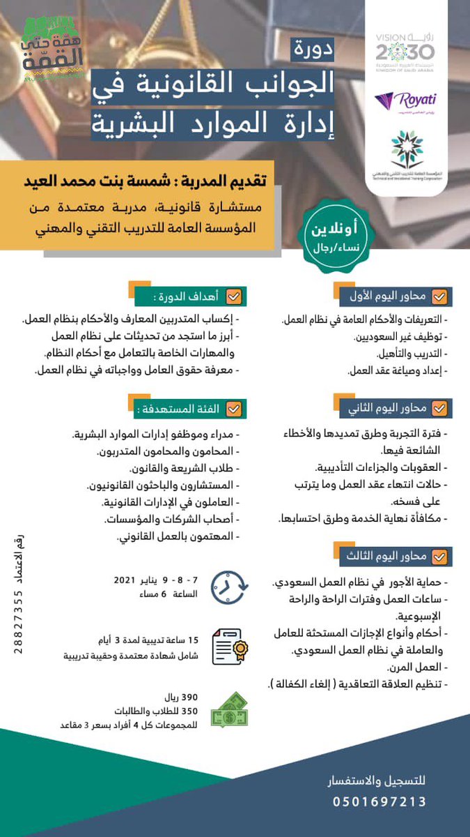 سلطان بن عساف السحمه On Twitter نلتقيكم بتاريخ ٢٥ ٠١ ٢٠٢٠م بمحافظة جدة في دورة نظام العمل السعودي والتأمينات الاجتماعية والذي تستمر لمدة اربع ايام نسال الله