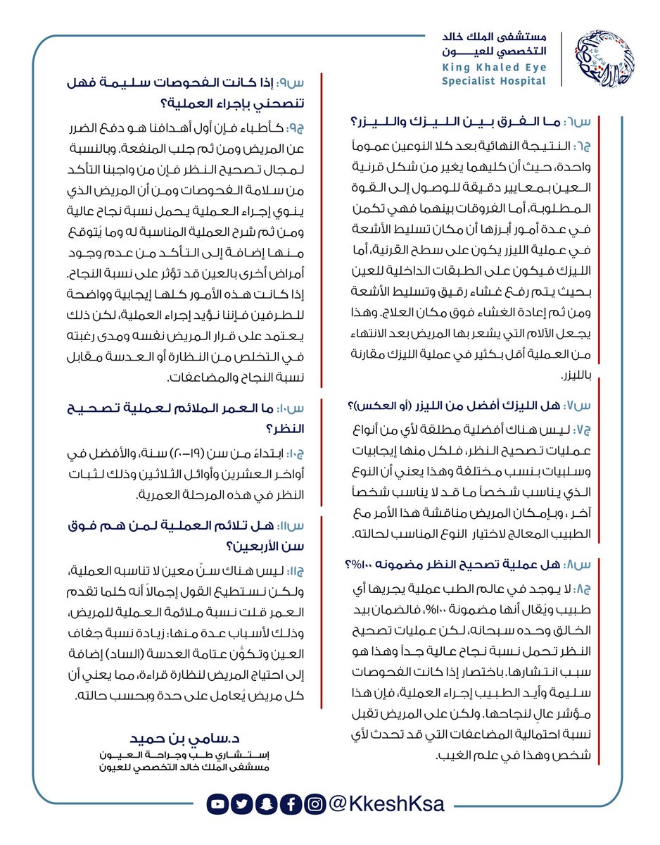 مستشفى الملك خالد التخصصي للعيون Kkesh V Twitter عملية تصحيح النظر ليست مناسبة لكل الأشخاص