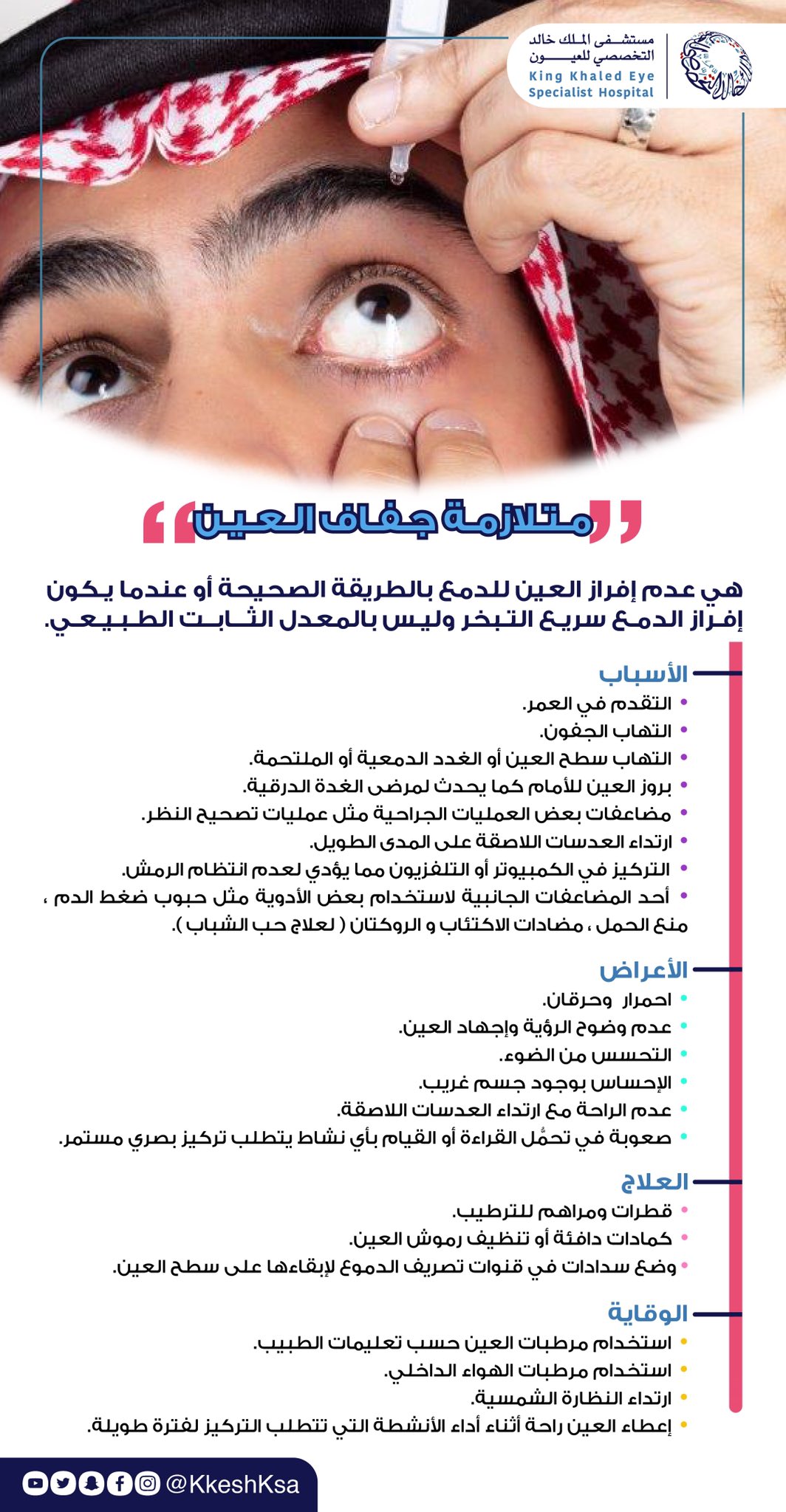 Twitter पर مستشفى الملك خالد التخصصي للعيون Kkesh تعرف على أسباب جفاف العين وعلاجه وكيفية الوقاية منه انتم في العيون