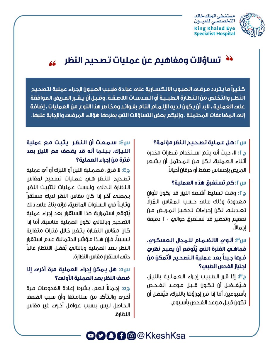 مستشفى الملك خالد التخصصي للعيون Kkesh On Twitter تساؤلات ومفاهيم عن عمليات تصحيح النظر