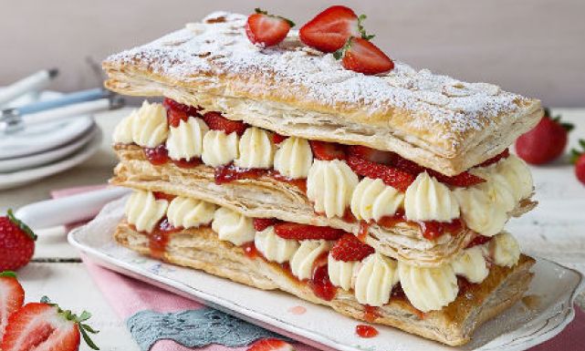 طريقة عمل كيك طبقات البف باستري بالفراولة Just Food