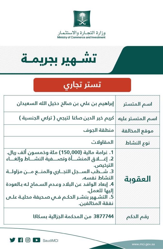 وزارة التجارة On Twitter التجارة تشهر بجريمة تستر تجاري