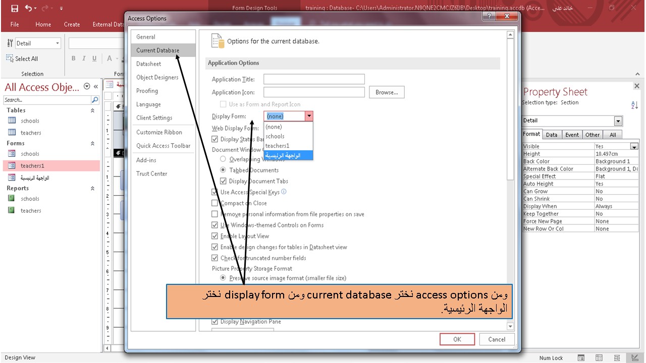 تصميم الواجهة الرئيسية فى برنامج الاكسيس Ms Access مدرسة الويب Web School